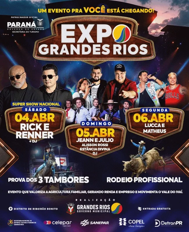 HomeRegiãoExpo Grandes Rios vai até segunda-feira, dia 06 de abril. Participe Região Expo Grandes Rios vai até segunda-feira, dia 06 de abril. Participe Por Informativo Jandaia 6 de abril de 2026 Compartilhar FacebookTwitterPinterestWhatsApp Compartilhar FacebookTwitterPinterestWhatsApp OUTRAS NOTÍCIAS Região Faxinal e São João do Ivaí com ameaça e confusão familiar atendidas pela PM 22 de abril de 2026 Região SÃO PEDRO DO IVAÍ – Colisão traseira deixa motociclista ferido na PR-457 13 de abril de 2026 Região Estado vai pavimentar trecho de 11 quilômetros da PR-532 entre Apucarana e Londrina 7 de abril de 2026